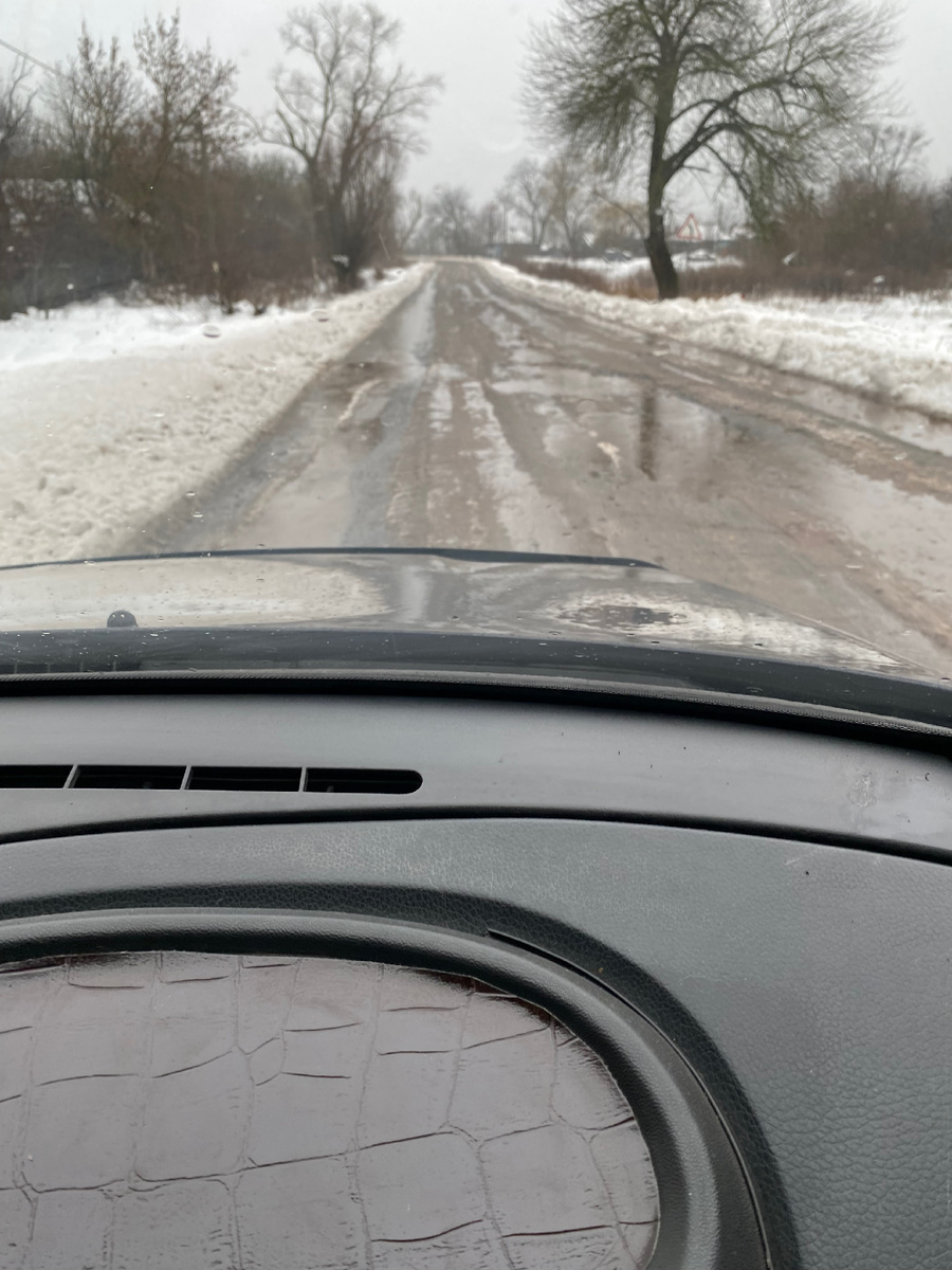 Грязь летит из-под колес. На фото в окне синеет отражение рукава моей куртки - открыть окно я не решилась, не отмоешься.