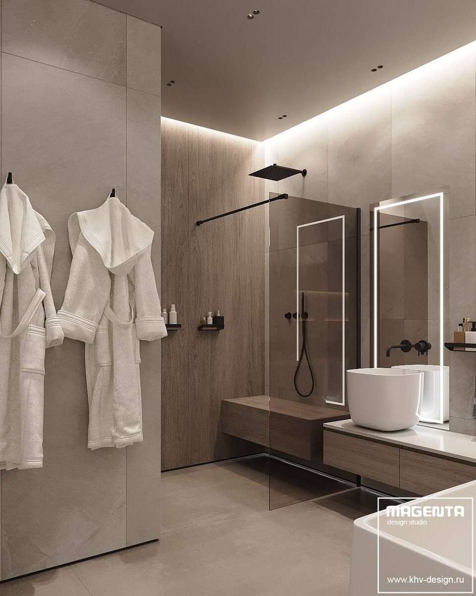 В нашем дизайне каждая деталь продумана до совершенства: натуральные, матовые поверхности создают атмосферу спокойствия и уюта, а скрытое освещение подчёркивает архитектурные линии и добавляет глубины пространству. Обратите внимание на минималистичную сантехнику и элегантный контраст чёрных акцентов - они делают интерьер одновременно современным и выразительным. Прикоснитесь к дизайну класса А: портфолио реализованных проектов — на сайте magentastudio.ru Magenta