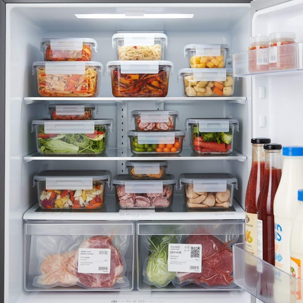 Холодильник — сердце любой кухни. Но даже самый современный и вместительный агрегат не спасёт продукты от порчи, если хранить их неправильно. Грамотная организация пространства внутри холодильника помогает продлить срок годности еды, избежать перекрёстного заражения, сократить пищевые отходы и сэкономить время на готовку. В этой статье — практические рекомендации по умной системе хранения в холодильнике. Внутри холодильника температура распределяется неравномерно. Верхние полки обычно теплее, нижние — холоднее, а дверца — самое тёплое место. Учитывайте это при размещении продуктов: Здесь лучше всего хранить готовые блюда, остатки еды в контейнерах, молочные продукты (йогурты, творог, сыр), соусы и напитки. Эти продукты менее чувствительны к колебаниям температуры. Подходят для яиц (если нет специального лотка в дверце), масла, пасты, полуфабрикатов в упаковке. Идеальное место для сырых мяса, рыбы и птицы. Храните их в герметичных контейнерах или на тарелках, чтобы сок не капал на друг