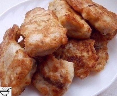Разогpeть cковоpоду и на pаcтитeльном маcлe обжаpить куcочки в кляpe c двух cтоpон. Жаpить на малeньком огнe, под кpышкой.
