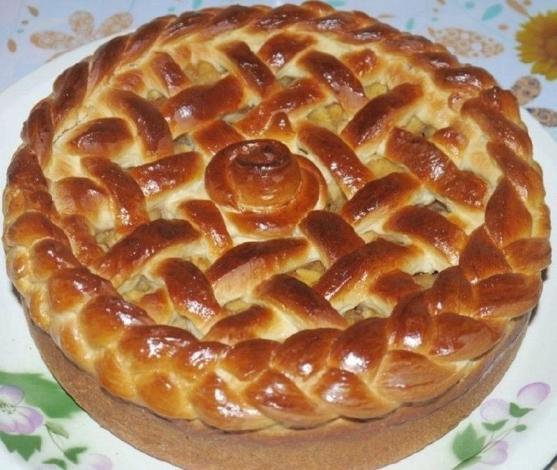(Рецепт на Святки) Ингредиенты: - 250 мл молока; - 0,5 стакана сахара; - 3 яйца; - 1 пачка дрожжей "саф-момент"; - 1 ч. л соли; -150 грамм сливочного масла (или маргарина); - 450 грамм муки; - ванилин и соль немного; - 4-5 шт яблок для начинки. *Начинка может быть любой! Приготовление: Вскипятить молоко, добавить масло, сахар, мешать до растворения сахара, снять, дать остыть. В теплое молоко добавить взбитые яйца. В миску всыпать просеянную муку, добавить дрожжи, соль - перемешать, сделать посередине углубление, туда вылить молочную смесь, замесить тесто. Дать постоять 1-1.5 часа. Яблоки порезать дольками, засыпать сахаром (по вкусу) и немного протушить на медленном огне. Сформировать открытый пирог на круглом противне, выложить яблоки, верх покрыть решеткой из теста. Сверху пирог смазать яйцом. Выпекаем в разогретой до при t=190°C духовке, до готовности. Ангела за трапезой! 🕊 Благая весть ❄️❄️❄️❄️❄️❄️ Не #Постныйстол