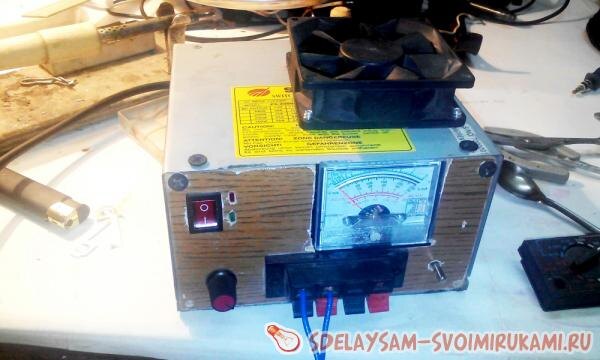 Всем доброго времени суток! Сегодня я хочу представить вашему вниманию Лабораторный Блок Питания (ЛБП). Я думаю каждый начинающий радиолюбитель сталкивался с проблемой получения необходимого напряжения для той или иной своей самоделки, ведь каждое устройство требует разного напряжения. С такой проблемой столкнулся на днях и я. Надо было за питать самодельный усилитель, а необходимого напряжения под рукой не оказалось. Ну это не первая моя самоделка с которой у меня возникли проблемы. Вот я принялся за работу. Начинаем! Корпус я взял из компьютерного Блока Питания. Разбираем его и вытаскиваем внутренности и отпиливаем переднюю панель (ту с которой выходят провода) как на фото. Далее собираем его обратно и вырезаем из ДВП переднюю панель будущего блока питания, можно из пластика будет красивее. Отрезаем крепления платы с одной стороны и выгибаем их таким образом чтобы потом закрепить на них сделанную нами переднюю панель. Выбираем место для трансформатора, сверлим в нижней части корпуса