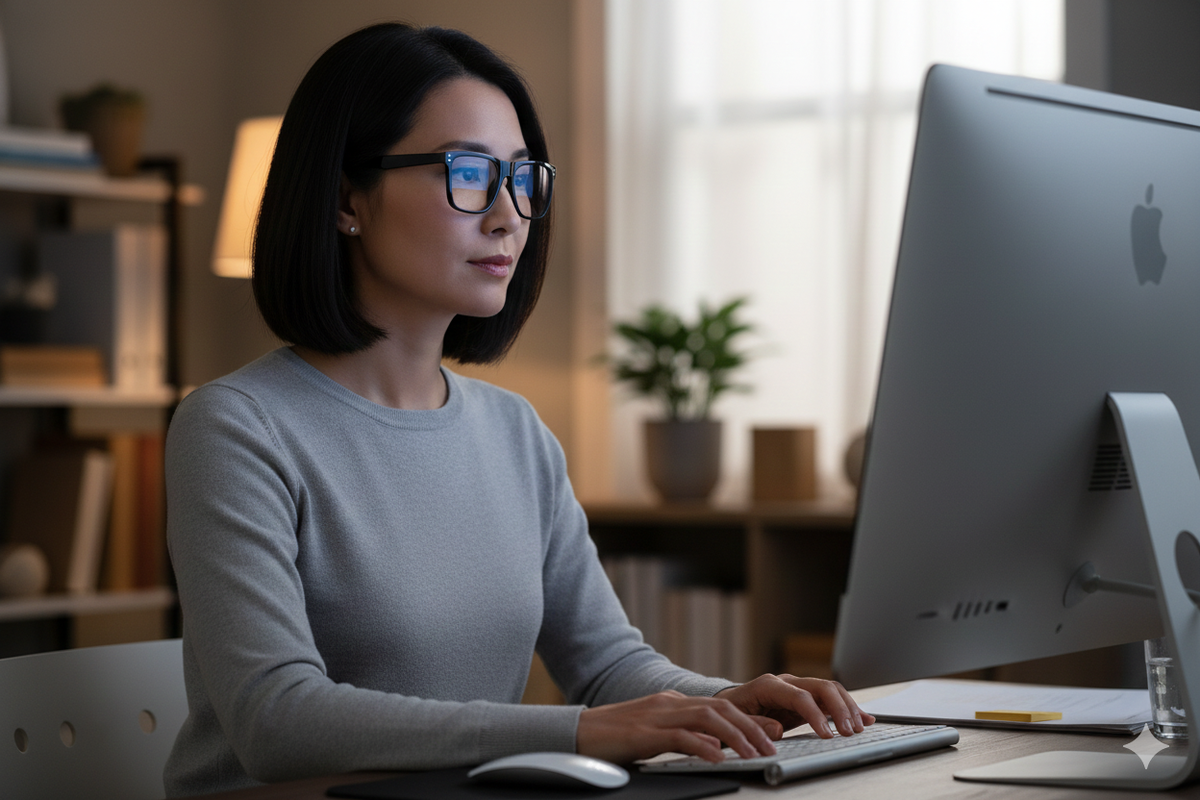 Она надевала очки WIEDA каждый день для работы. И каждый день она была энергичной, без головной боли, без напряжения.