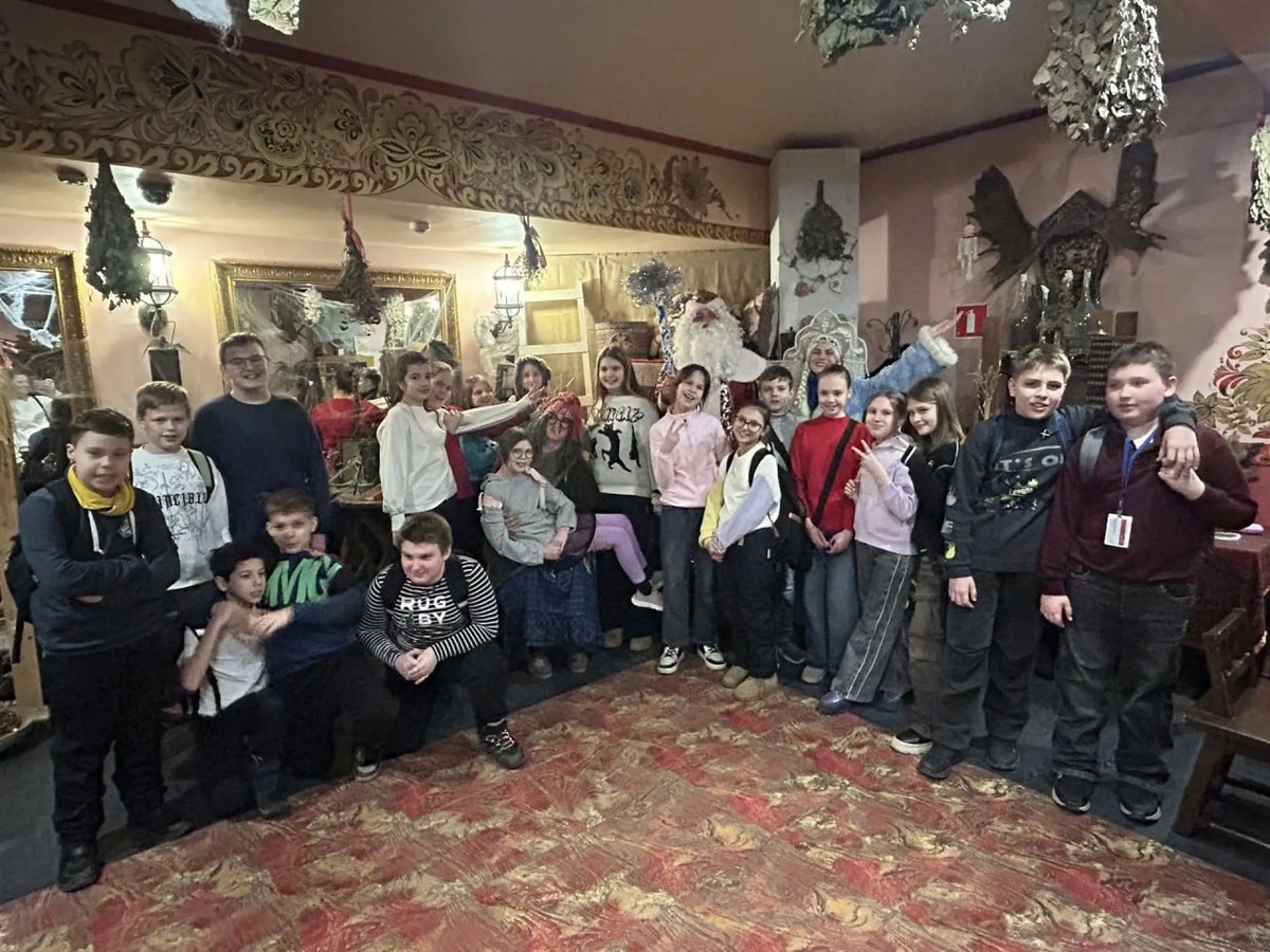 Ученики 5 "Д" класса с классным руководителем отправились в Измайловский Кремль. Поездка оставила очень теплые, яркие и по-настоящему праздничные впечатления. Это идеальный вариант для тех, кто хочет с головой погрузиться в атмосферу русского зимнего фольклора. Это не классический театр, а скорее масштабное интерактивное приключение. Что понравилось? 🎄 Атмосфера и локация: Измайловский Кремль сам по себе — сказочное место, особенно зимой, в вечерней подсветке. Деревянные терема, снег, огни — идеальные декорации для гоголевской повести. Чувствуешь себя не зрителем, а гостем на настоящих святочных гуляниях. 🎄 Интерактив и актеры: Это главный плюс программы. Спектакль не смотришь со стороны — в нем участвуешь. Дети (да и взрослые) помогают Вакуле и Оксане, выполняют задания от Чёрта, водят хороводы, участвуют в играх и квестах. Актеры работают отлично: контактные, харизматичные, умеют увлечь и детей, и взрослых. Чёрт — особенно колоритный! 🎄 Сюжет и действие: Маршрут построен как путе