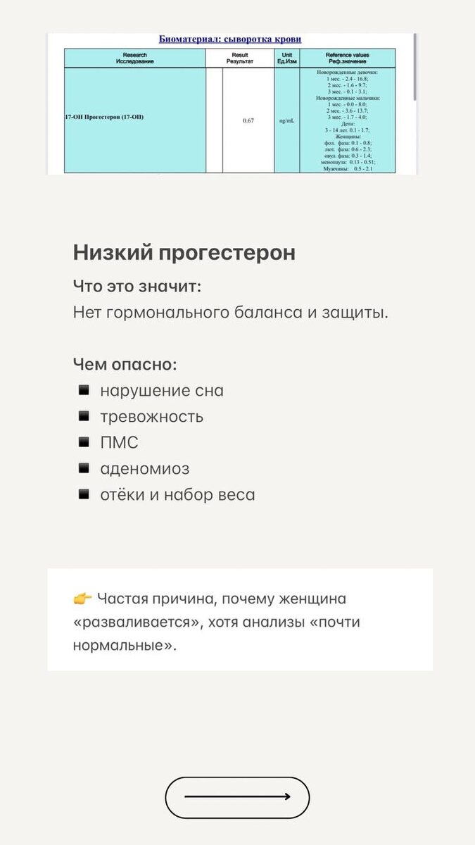 (📽️ та самая работа за кадром) Если у женщины: — не уходит вес, — рвётся сон, — цикл «живёт своей жизнью», — болит тело, — скачет давление, — а анализы «вроде бы почти нормальные», значит, проблема не в возрасте и не в силе воли. 🤩Ниже — клинический случай из моего Наставничества. Кейс полностью анонимный, все личные данные скрыты. Пациентка — женщина 44 года. Это та женщина, у которой снаружи всё держится, а внутри — постоянное напряжение: - Сон поверхностный, с ночными пробуждениями. - Цикл плывёт, гормоны как качели. - В отношениях — то вспышки, то холодная тишина. - И внутри постоянный голос: «опять я виновата». Самое тяжёлое — это не отдельные симптомы, а многолетняя история, где ты стараешься, лечишься, контролируешь, но облегчения не приходит. С чем она пришла На момент обращения были: — задержки цикла, — головные боли, — скачки давления, — ночные пробуждения, — ощущение нулевой энергии. За этими жалобами стояла долгая история: • Борьба с полипами в желчном 4года и пост