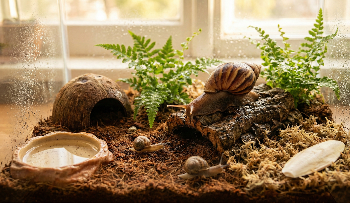 От того, насколько уютным и продуманным будет террариум, напрямую зависит, будет ли улитка активной, здоровой и красивой. В этой статье мы по полочкам разберем, как подготовить жилье для брюхоногих, чем его наполнить и о каких особенностях содержания гигантов-ахатин нужно знать.