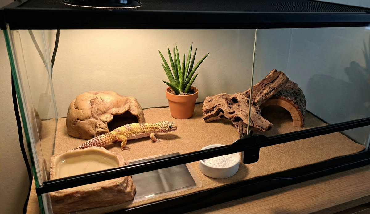 В этой статье мы подробно разберем, как выбрать идеальный террариум и что в него положить, чтобы вашему эублефару жилось комфортно.