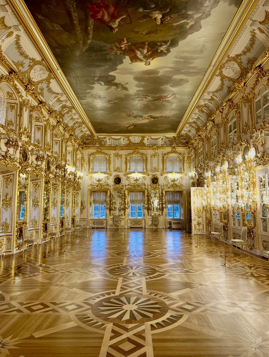 Интерьеры Большого дворца в Петергофе по большей части представляют вкусы и пристрастия двух венценосных дам занимавших российский престол. Собственно сам дворец, выросший из скромных Верхних палат Петра Великого, был построен по желанию его дочери - императрицы Елизаветы Петровны. Реализацией проекта занимался естественно Бартоломео Франческо Растрелли и интерьеры им создавались в стилистике