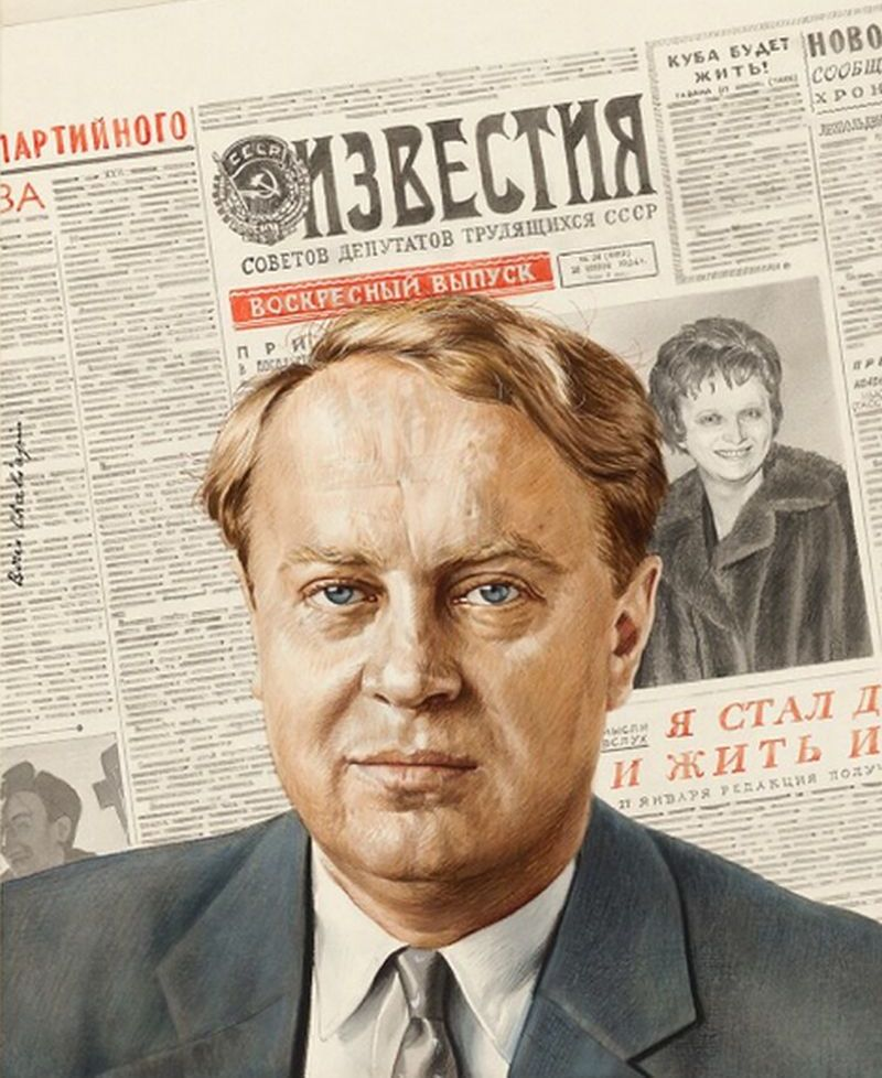 Портрет Алексея Аджубея для обложки американского журнала «Time». Рисунок Бориса Шаляпина (1904—1979), сына Фёдора Шаляпина.