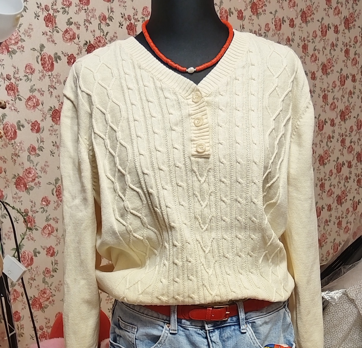 1. Купила для себя вот такой пуловер из хлопка. Цвет сливочного масла. У меня в коллекции такого нет . Решила- пусть будет)))