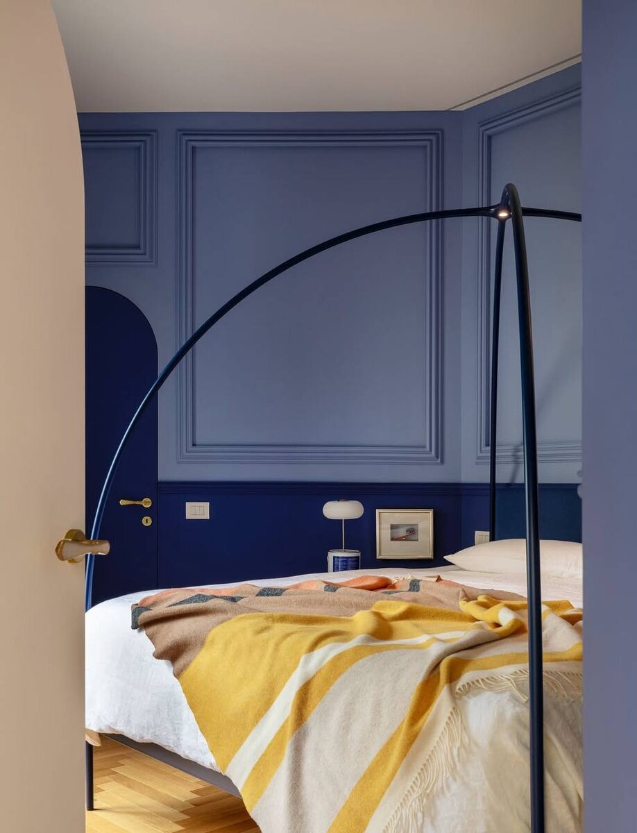 Перед вами пример того, как стены формируют настроение всего дома. Архитектурная логика и глубокий синий оттенок создают цельный образ, объединяющий спальню и санузел. Архитектурный декор Orac в этом проекте берет на себя главную роль: ▫️ выстраивает четкий ритм; ▫️ визуально вытягивает пространство; ▫️ связывает разные зоны в один визуальный сценарий. Это дизайн, в котором нет ничего лишнего, и именно в этом его сила. 📌 Сохраняйте пост в закладки для ваших будущих проектов #спальня