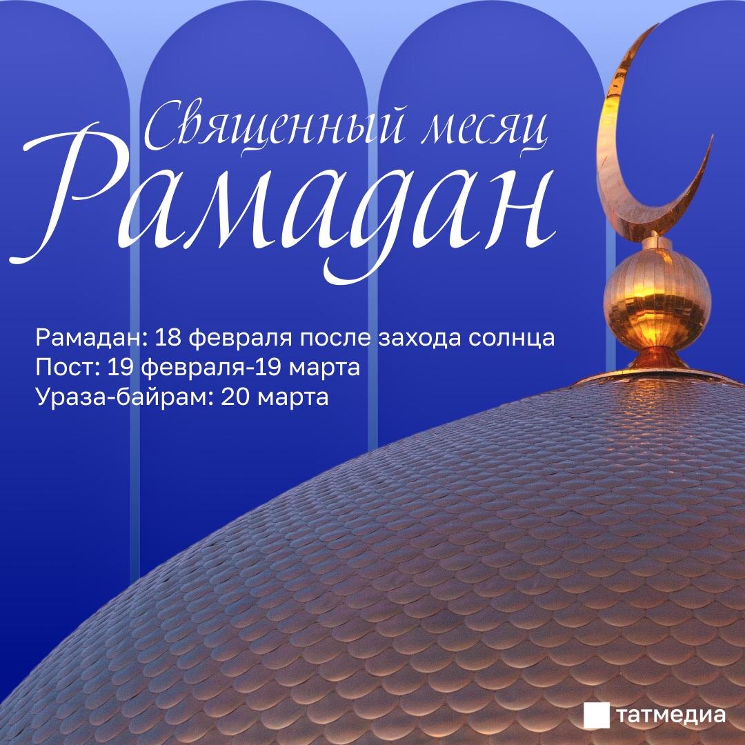 ☪️🤲 Когда наступит Рамадан в Татарстане? В этом году священный месяц Рамадан начнется 18 февраля после захода солнца. Соответственно, первый день поста выпадет на 19 февраля. В этом году верующие будут соблюдать уразу 29 дней, заключительным днем поста станет 19 марта. На следующий день, 20 марта, в Татарстане отпразднуют Ураза-байрам. В республике этот день станет нерабочим, поэтому верующие всецело смогут посвятить его богоугодным делам. @tatmediaofficial | Все каналы Татмедиа ™️ 1-й новостной MAX-канал Татарстана - подпишитесь.
