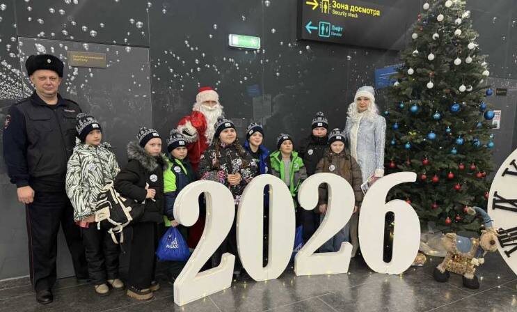 Полицейский Дед Мороз поздравил детей в аэропорту и на вокзале Кузбасса