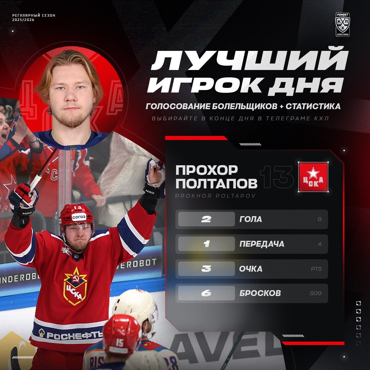 Главный творец камбэка ЦСКА против «Драконов» — Прохор Полтапов 🐴, который провел лучшую игру в сезоне, сделав дубль и набрав три очка!