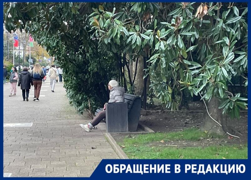 «Помогите и уберите!»: туристы возмущены попрошайкой, годами сидящей на центральной улице Сочи