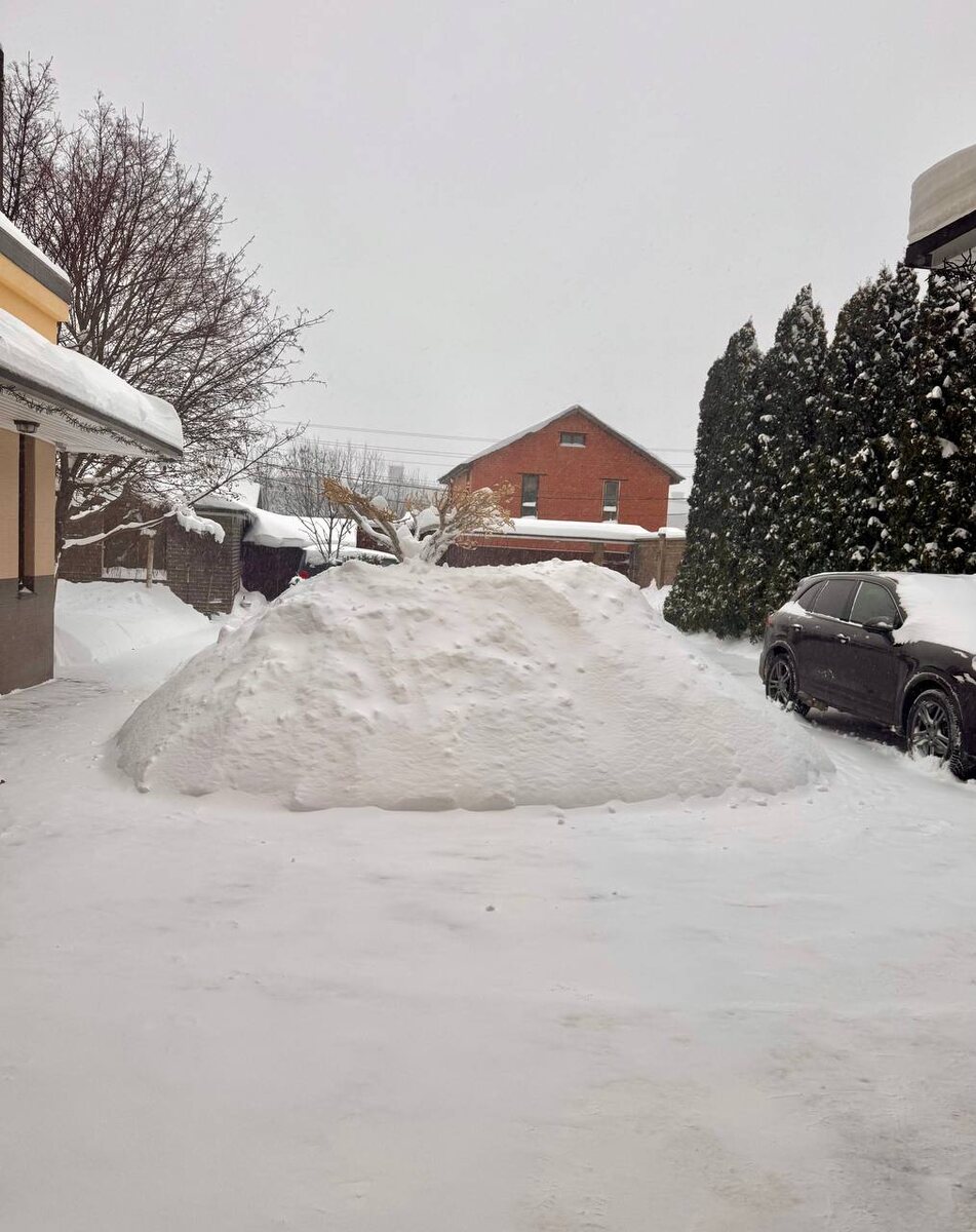 Каждый год зимой посреди нашего двора неуклонно растет снежная гора🏔️ В зависимости от интенсивности снегопадов она бывает выше/ниже, но