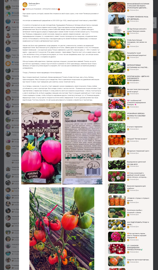 Ой, друзья, я как-то не воспринимаю себя блогером, я такой же огородник как и вы все. В Дзене делаю записи о том, как сложилась судьба разных сортов и культур в каждом году. Ну и все это сопровождается, конечно же, размещением фото. И вот как-то залпом три сразу мне попалось стыренных у меня и статей и фоток)) Смеюсь, потому как дело обычное. Неприятное, оно понятно. Но довольно рядовое.