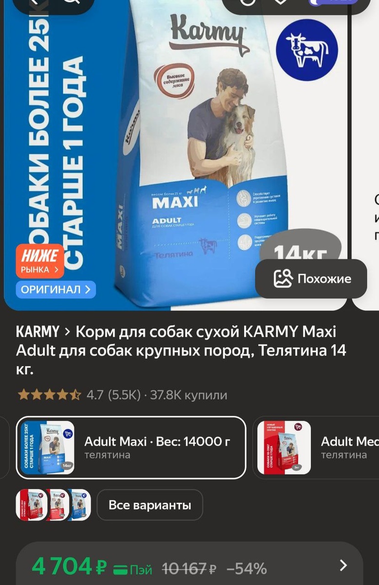 π»ΠΠΎΡΠΌ Π΄Π»Ρ ΡΠΎΠ±Π°ΠΊ ΡΡΡ ΠΎΠΉ KARMY Maxi Adult Π΄Π»Ρ ΡΠΎΠ±Π°ΠΊ ΠΊΡΡΠΏΠ½ΡΡ ΠΏΠΎΡΠΎΠ΄, Π’Π΅Π»ΡΡΠΈΠ½Π° 14 ΠΊΠ³ - 4 704Ρ (Ρ.ΠΏΡΠΉ