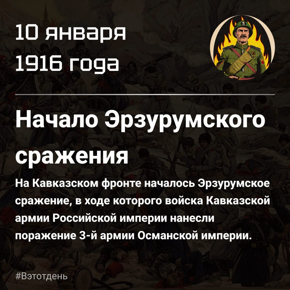 10 января 1916 года на Кавказском фронте началось Эрзурумское сражение, в ходе которого войска Кавказской армии Российской империи под