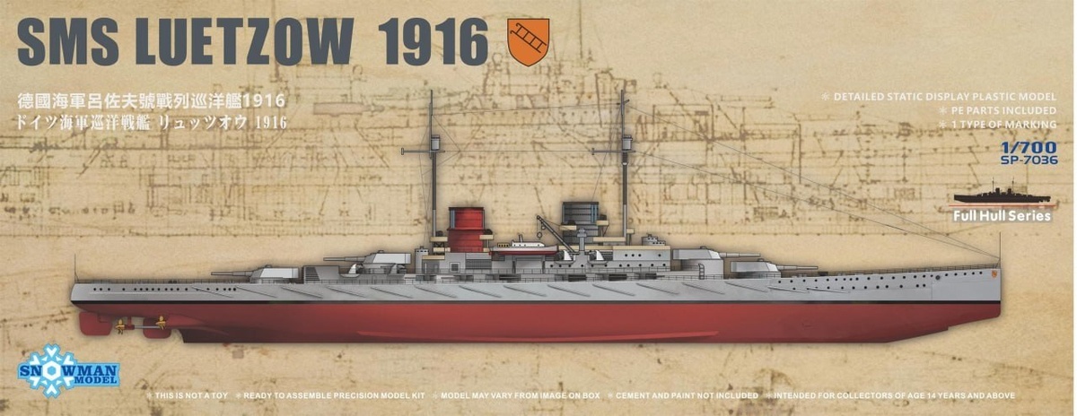 Snowman Model из Китая выпустит теперь и полнокорпусный вариант своей модели немецкого крейсера Первой мировой войны"Лютцов" в масштабе