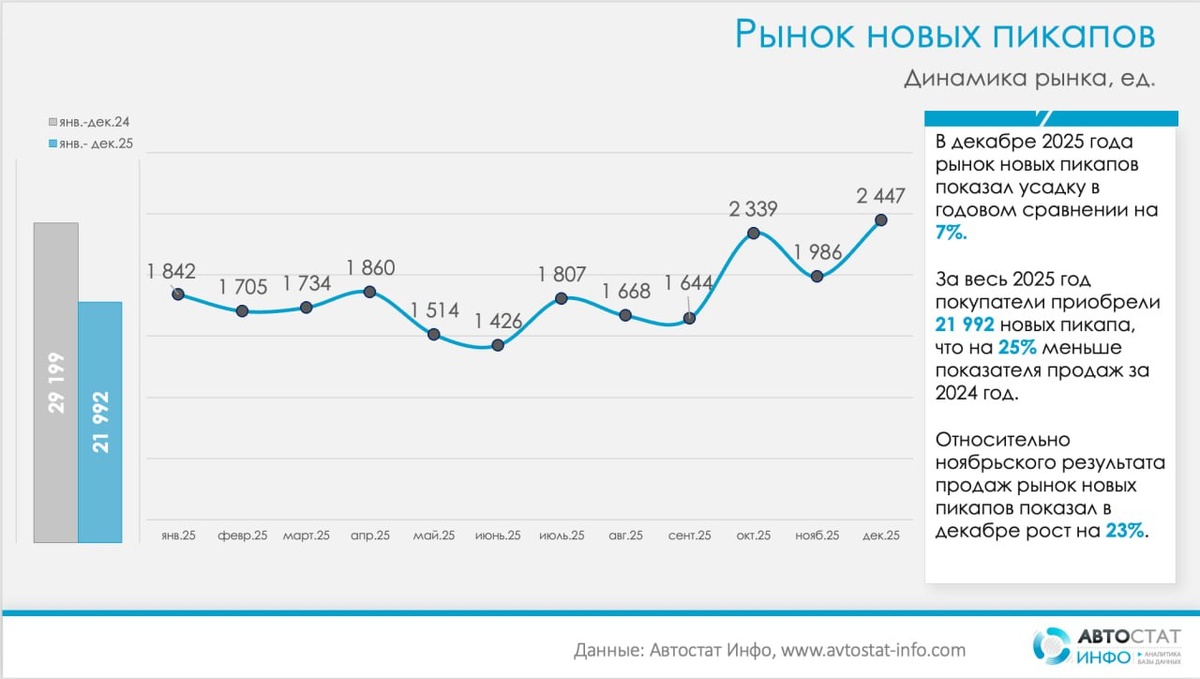 Рынок новых пикапов в России: минус четверть за год, но декабрь выводит сегмент в плюс