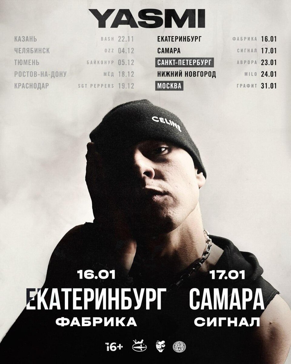 🎤 – YASMI 📍 – 5 городов: Екатеринбург, Самара, Санкт-Петербург, Нижний Новгород, Москва 🗓 – 16 – 31 января 💵 – от 1 400 руб. 🔗 – билеты (16+) #концерты #билетынаконцерт #yasmi #ysmiscoming #екатеринбург #самара #санктпетербург #нижнийновгород #москва 👉 Список концертов: январь • февраль • март @est_prohodka
