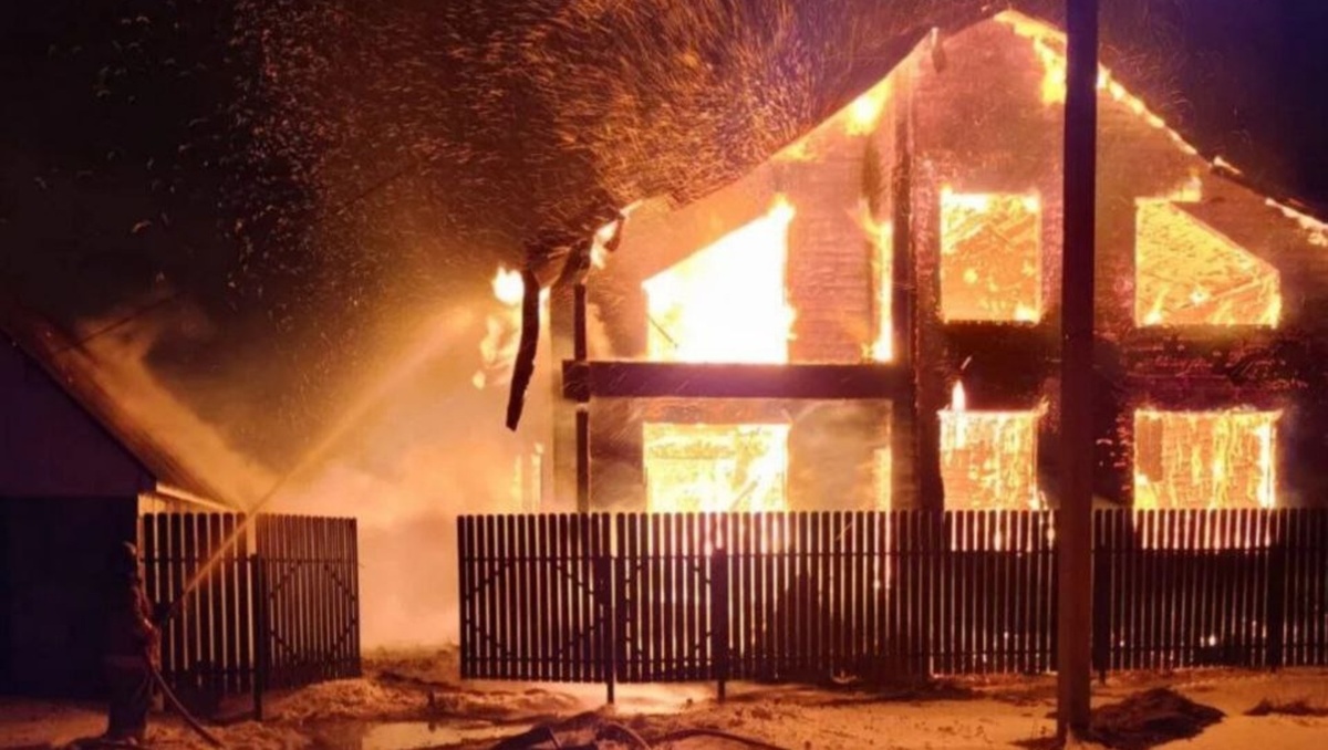 В районе Башкирии ночью сгорел двухэтажный частный дом