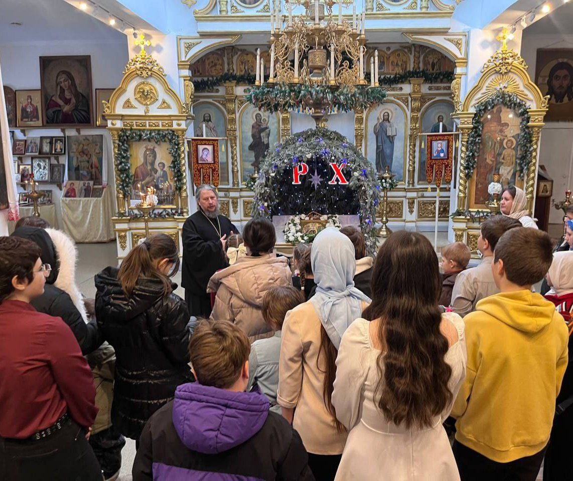 великому событию - Рождеству Господа нашего Иисуса Христа. Дети вместе с родителями собрались в этот день в храме Богоявления Господня. Настоятель прихода протоиерей Василий Бобылёв поздравил всех со светлым праздником и рассказал о его событиях. Дети вместе с педагогами спели тропарь. Затем все отправились в кафе "Исток". К ребятам в гости пришли Дед Мороз и Снегурочка, которые не дали им скучать. Дети вместе с родителями пели, танцевали, разгадывали рождественские загадки, участвовали в весёлых играх и конкурсах и, по традиции, получили от Деда Мороза рождественские подарки. В завершение праздника все собрались за праздничной трапезой. Мероприятие прошло в теплой семейной атмосфере.