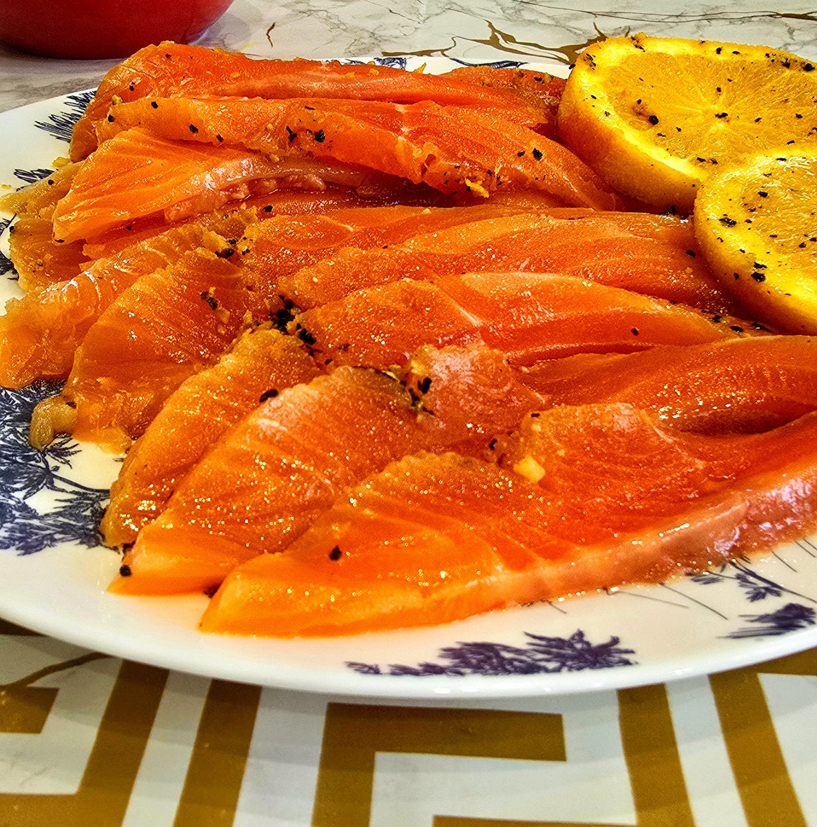 Гравлакс из малосольной форели с цедрой апельсина и пряными специями для гурманов. Нежная, малосольная рыба с изысканным , деликатесным вкусом с цитрусовыми нотами