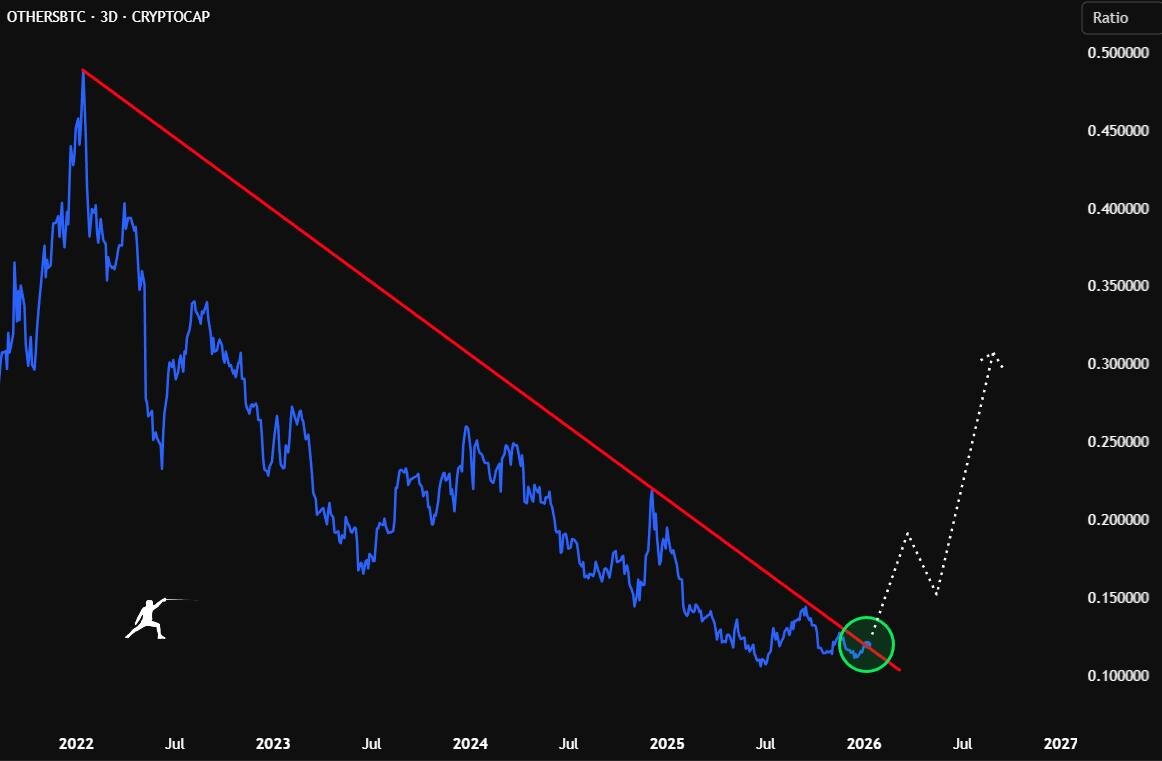 📈График Альткоины/биткоин вот-вот прервут четырехлетний нисходящий тренд.