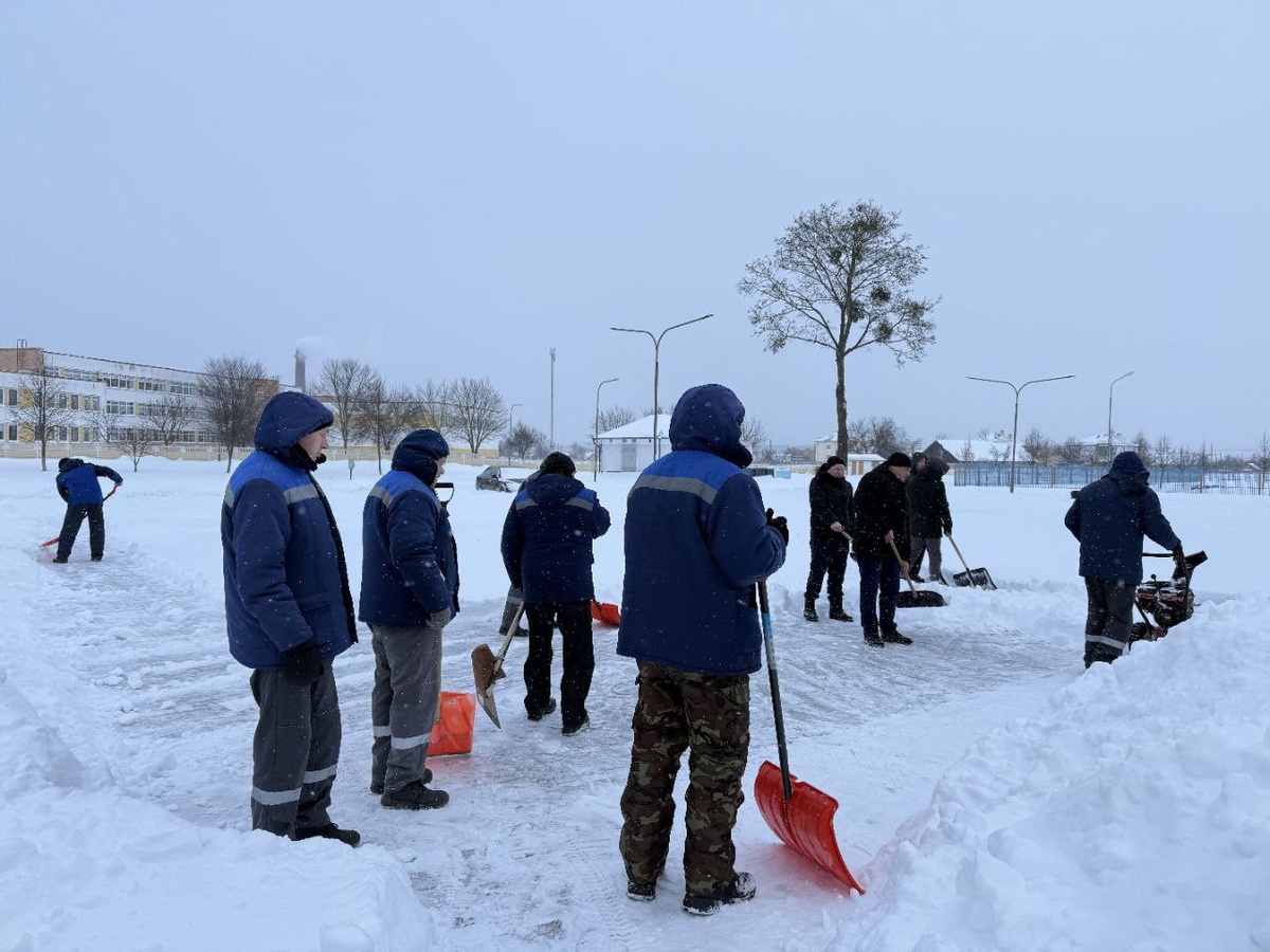 Работники УСУ "ДЮСШ г. Столин" тоже присоединились к борьбе со стихией и расчищают снег на своей территории