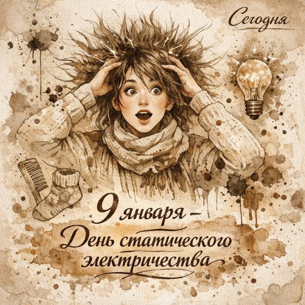 9 января в мире отмечают необычный и познавательный праздник — День статического электричества. Это неформальный международный день, призванный привлечь внимание к удивительному физическому явлению, с которым каждый из нас сталкивается в повседневной жизни. Праздник зародился в США и постепенно распространился по миру. Его главная цель — популяризировать научные знания о статическом электричестве, показать, как оно влияет на нашу жизнь, и рассказать о способах защиты от его нежелательных проявлений. Статическое электричество — это накопление электрических зарядов на поверхности тел, приводящее к образованию электростатических полей. В основе явления — дисбаланс положительных и отрицательных зарядов. Проще говоря, это когда: Явление проявляется в самых неожиданных ситуациях: Несколько простых советов для повседневной жизни: Статическое электричество — не просто забавное явление. Оно: 9 января — отличный повод взглянуть на привычное явление под новым углом. Статическое электричество нап