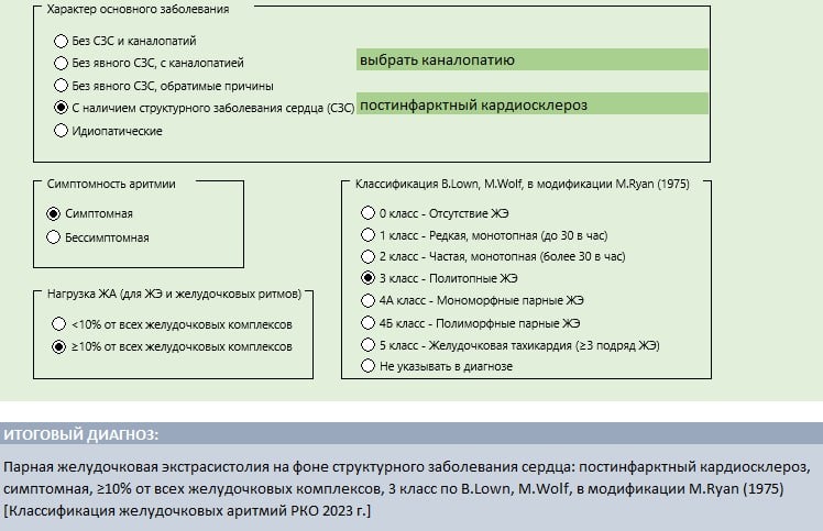 🤩В конструктор диагноза желудочковых аритмий, для перенесших инфаркт миокарда, добавлена классификация B.Lown, M.Wolf, в модификации M.Ryan (1975). 🤩Скорректирована первичная и вторичная профилактика кардиотоксичности в разделе кардиоонкологии. 🤩Добавлена формула Миффлина-Сан Жеора для оценки базального уровня метаболизма. ➡️ Полная версия CardioEXCEL (ver. 67 от 10.01.2026) доступна донам VK-сообщества. #CardioEXCEL @sinkevich_cardio
