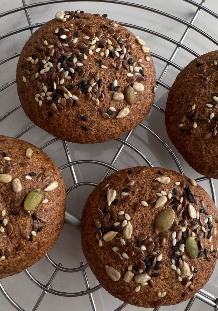 Я, как большой поклонник чечевицы скажу, мне очень нравятся эти булочки, но я готовила всегда по другому рецепту. Сегодня добавила псиллиум, и они более воздушные. Так что, сохраняйте и готовьте. (Кстати, они без глютена, вдруг кому-то актуально) 160 гр. красной чечевицы 100 мл.воды 25 гр.псиллиума 2 ст.л. раст.масла 1/2 ч.л. соли, специи по вкусу 1/2 ч.л. соды 1/2 ч.л. разрыхлителя 1 ч.л. лимонного сока ✔️ Чечевицу промываем и замачиваем на ночь. ✔️ Сливаем воду. И перекладываем в чашу блендера. Добавляем остальные ингредиенты и пробиваем до однородной массы. Оставляем на 10 минут набухать. ✔️ Мокрыми руками формируем булочки (получается 8 шт. мелких или 5 крупных), оставляем на 10 минут перед выпечкой постоять при комн.t, далее посыпаем семечками и выпекаем 40-50 минут в разогретой духовке при температуре 160-165°. ✔️Обязательно дать остыть булочкам.