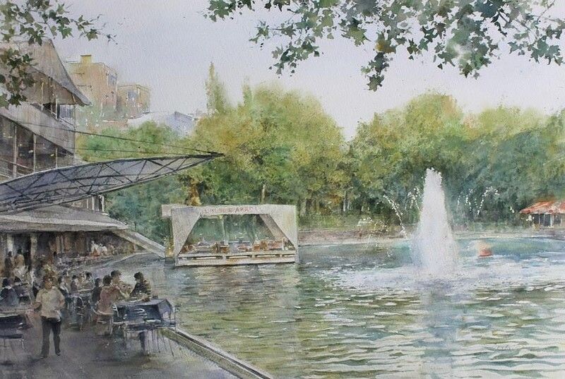 Его акварели – это не просто застывшие кадры городской жизни, это живые истории, рассказанные красками и светом. Глядя на его работы, словно слышишь приглушенный шум мостовых, звон трамваев и обрывки разговоров, доносящиеся из открытых окон.