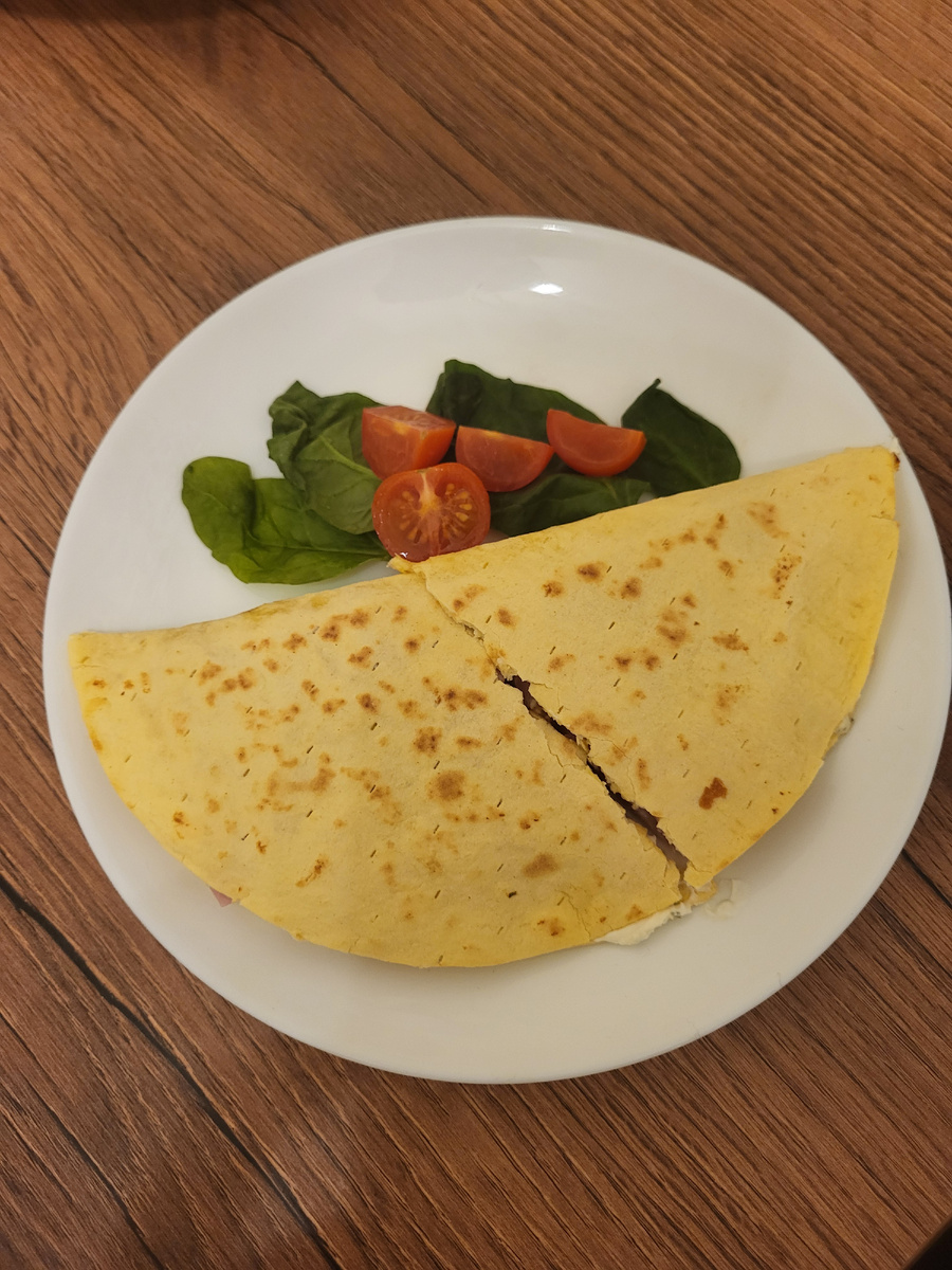 На завтрак сегодня был лаваш внутри с индейкой, сыром и корейской морковью