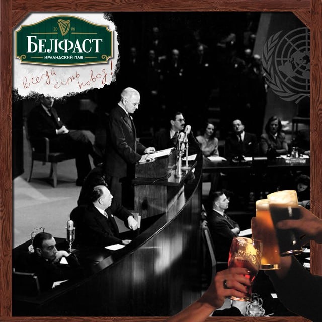 государство. Мир только начал оправляться от всеобщей войны, и в нём снова закрутились колёсики большой политической игры. Так и продолжают крутиться, хотя качество политиков с тех пор, конечно, заметно упало. Ну, за надежду всего человечества! http://belfast-pub.ru/ . #belfast_pub #паб #какмылюбим #естьповод #оон #генассамблея