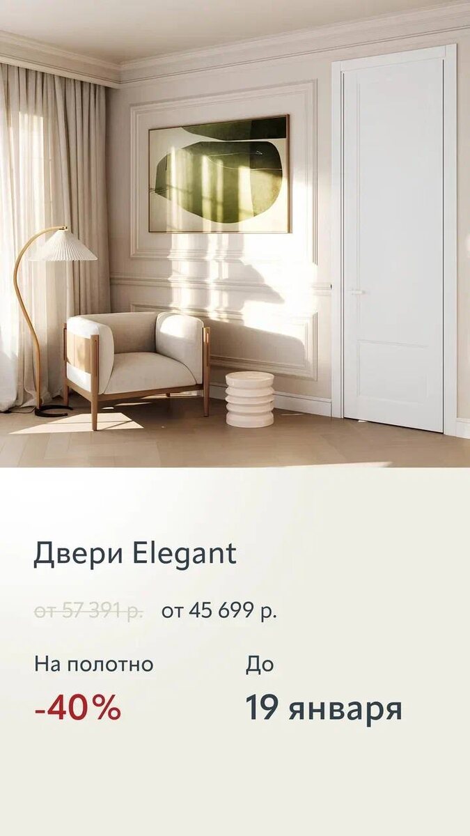 Действует до 19 января. Ждём вас в салоне Sofia в бизнес-парке Румянцево 📍 Киевское шоссе, 22-й километр, дв4с2кВ, корпус "В", 6 вход, 1 этаж, павильон 108В ⏱Пн.- Вс. с 10:00 до 21:00 📱 +7(926)710-71-06 8(495)796 33 29 ✅WhatsApp https://wa.me/79267107106 💬Telegram https://t.me/sofia_doors_msk 🌐 https://yandex.ru/profile/40194768964/