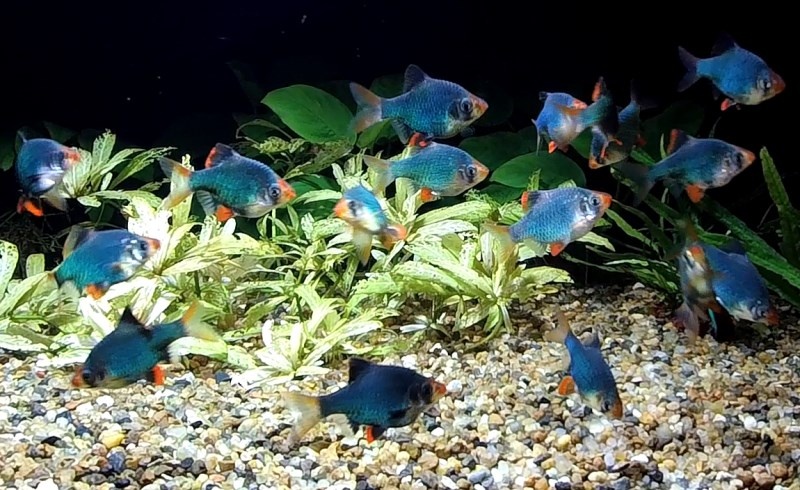 Суматранские и Мшистые Барбусы рыбки стайные с активным поведением. Суматранские считаются классикой, а Мшистые мутацией впоследствии закреплённой разводчиками. Поведение их одинаково. Условия содержания идентичны. Различаются только окраской. Окраска Суматранских Барбусов необычна и привлекательна. Поперёк ярко жёлтого (жёлто-серебристого) тела проходят четыре чёрных полосы. Третья от носа полоса переходит на спинной плавник. Кантик спинного плавника красный. Выглядит это контрастно, оттого и красиво. Плавнички и мордочки самцов красного цвета. Во время нереста они просто горят. У самок плавнички яркостью не блещут, брюшко полное, что и отличает их от самцов. В последнее время приходится наблюдать рыбок с телом грязно жёлтого цвета. Чёрные полосы с размытыми границами, на жёлтом теле (которое не совсем жёлтое) имеются чёрные вкрапления. Это результат «деятельности» современных разводчиков, которые в погоне за прибылью совершенно не занимаются отбором из потомства лучших и правильных