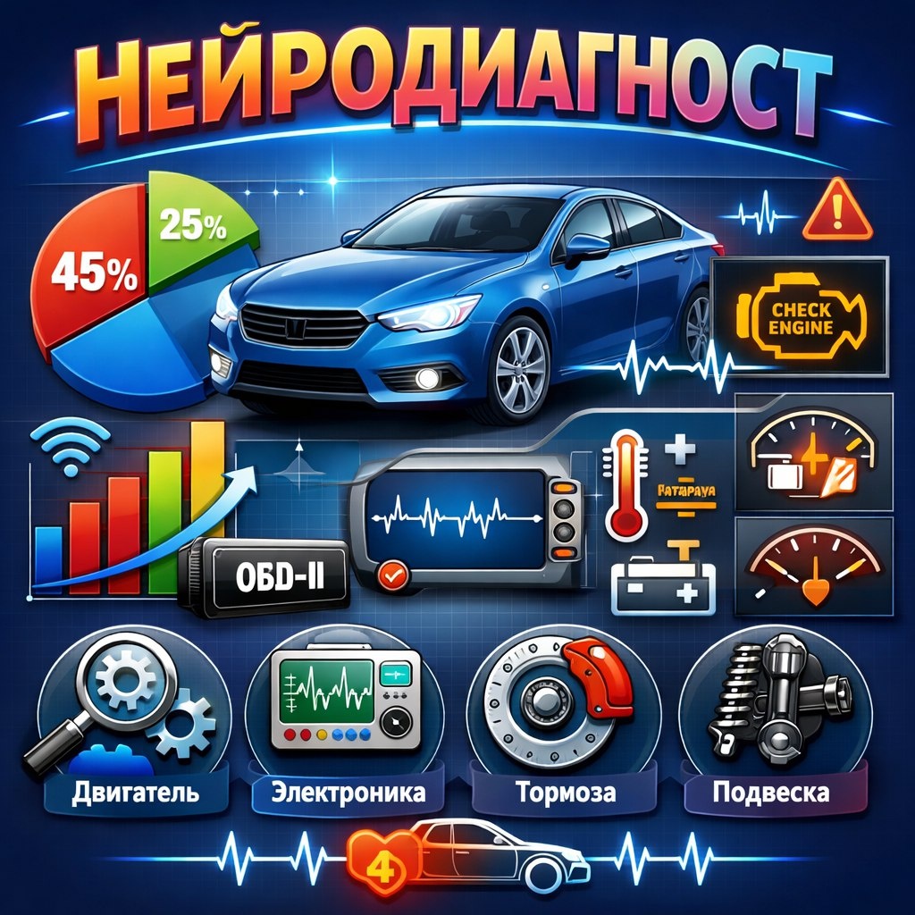 1. Диагностика системы охлаждения с опрессовкой и тестом СО₂: 1-1.5 часа
