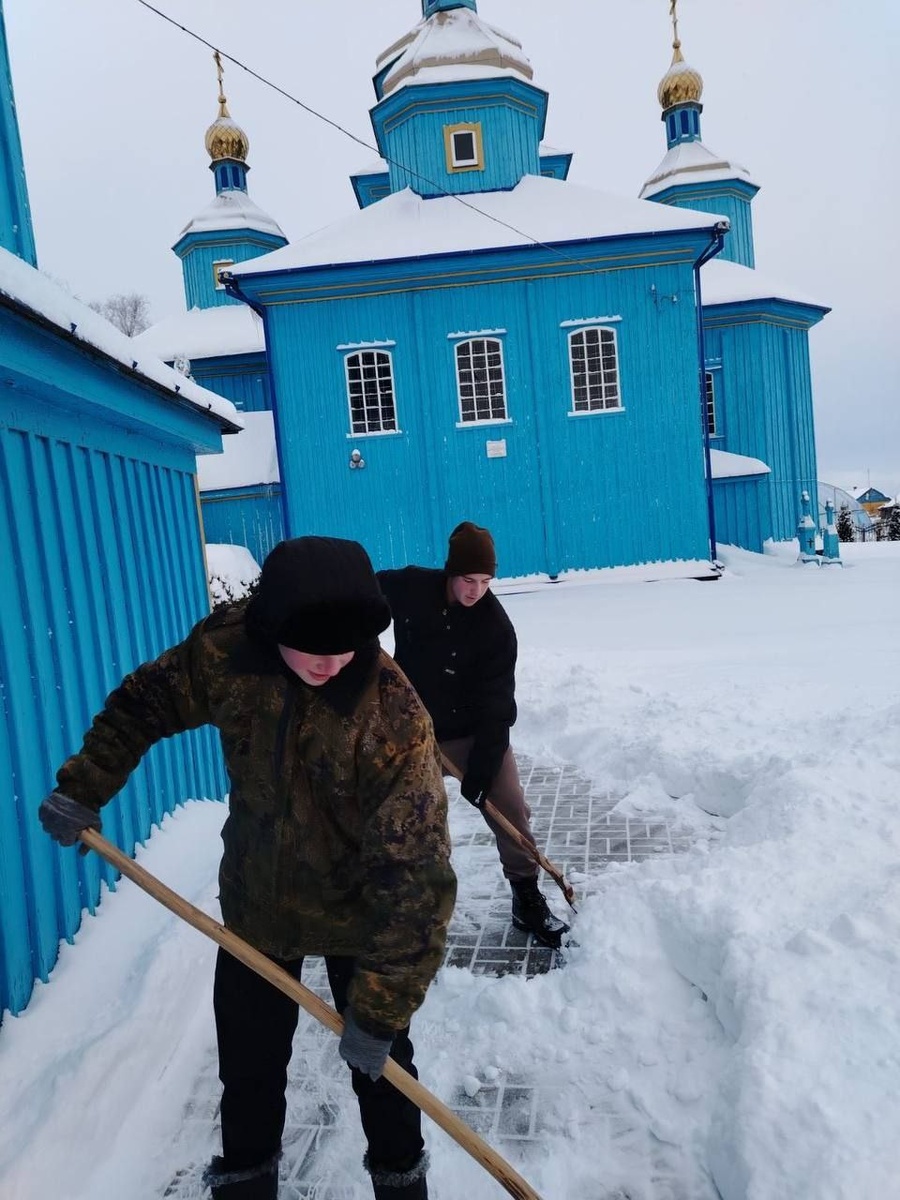 Волонтеры Велемичской СШ продолжают борьбу со снегом