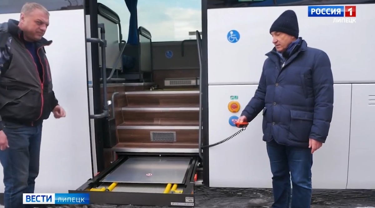 Автобус для перевозки маломобильных граждан появился в регионе. Он пополнил парк Липецких автобусных линий. Попасть в салон автобуса просто благодаря выдвижному подъемнику. Он управляется с пульта. Его грузоподъемность до 250 (двухсот пятидесяти) килограммов. Предусмотрены ручки, чтобы держаться. Дверь — специально увеличенная. А в салоне есть специальные крепления для коляски. Немаловажно и то, что автобус отвечает и требованиям экологической безопасности — работает на газовом топливе. Александр Соколов, директор ОАО «Липецкие автобусные линии»: — Мы постоянно занимаемся повышением комфорта перевозок наших пассажиров. И когда я впервые увидел вот этот автобус на выставке в Москве, у меня сразу появилась мечта приобрести этот автобус. Да, это дорого стоит. Но мечта наша, к счастью, воплотилась в жизнь. Это автобус один единственный в России, другого такого нет. Липецкие автобусные линии обслуживают порядка половины межмуниципальных маршрутов. Новый автобус будет ходить по разным — в за