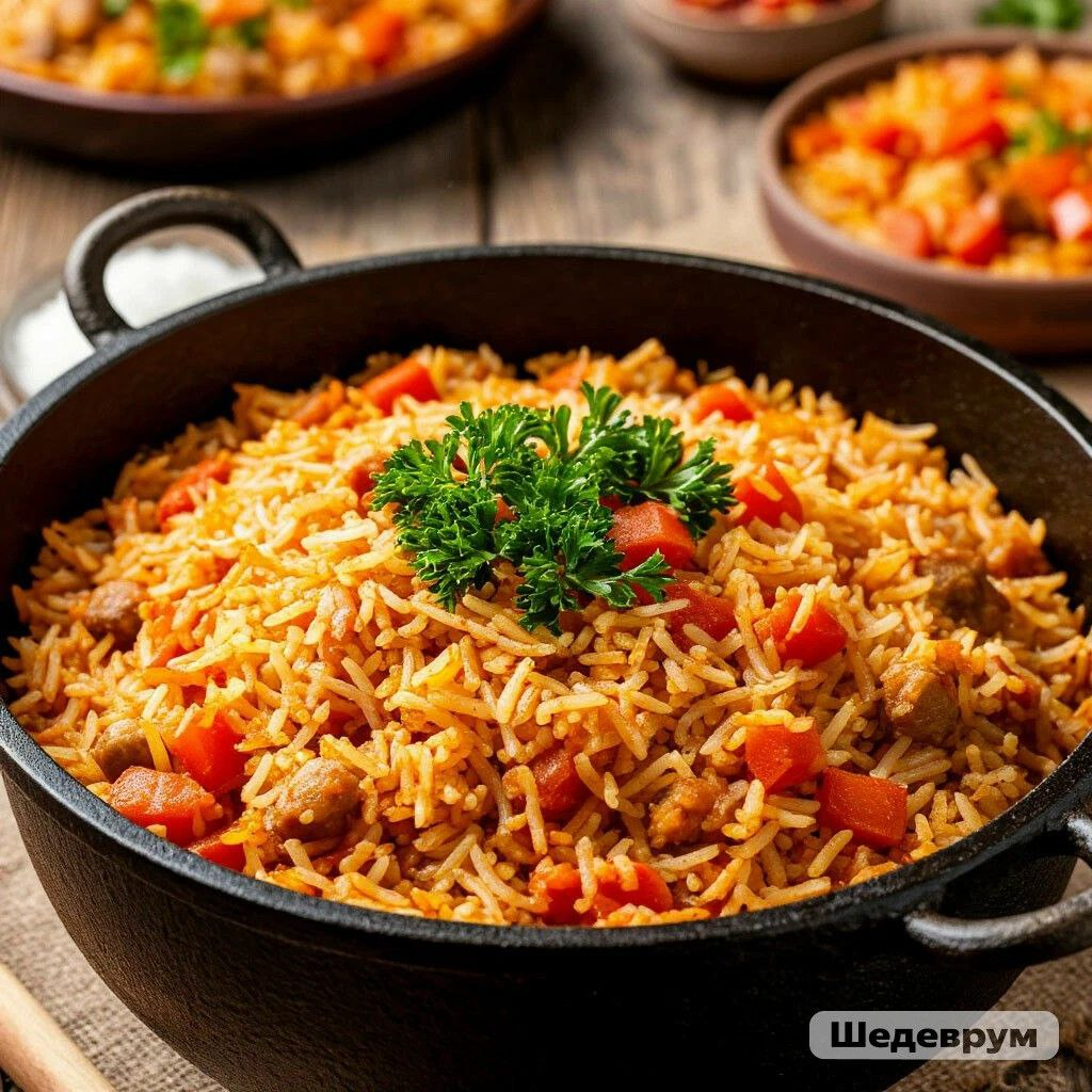 Рис для этого плова необходимо заранее подготовить. Его заливают 1-2 стаканами подсолёной воды и оставляют на всю ночь. Рис должен впитать воду полностью. Далее последовательность приготовления плова следующая. 1. Разогреваем растительное масло в казане до такой степени, чтобы от него пошёл лёгкий дымок. Готовность масла к приёму продуктов ещё определяется так: в казан бросают щепотку соли, которая должна издавать характерный треск. 2. Как только масло будет готово в него опускают нарезаную кусочками баранину. По весу мяса должно быть столько же, сколько риса в сухом виде. Баранину жарят до появления красивой корочки, постоянно помешивая. 3. В казан к мясу добавляют морковь, порезанную соломкой, лук, нашинкованный полукольцами. Причём лука должно быть больше, чем моркови. Морковка должна размягчиться, а лук приобрести золотистый оттенок. 4. В казан к мясу овощам добавляют специи. Это может быть чёрный перец, красный жгучий перец, барбарис, зира, душистый пере. Дав потомиться 2-3 мин