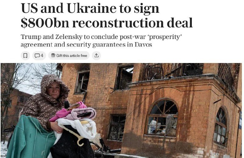 ▪️США и Украина подпишут соглашение о реконструкции на $800 миллиардов, — The Telegraph. ▪️Эти средства планируют привлекать в течение следующего десятилетия для восстановления и стимулирования ее экономики. ▪️Я обсуждаю с Трампом потенциальное соглашение о свободной торговле с США, — Зеленский для Bloomberg. ▪️Соглашение предусматривает нулевые тарифы на торговлю с США и будет распространяться на отдельные промышленно развитые регионы Украины. Это предоставит стране «серьезные преимущества» перед соседними государствами и может привлечь новые инвестиции и бизнес, мечтает киевский режим. 🌐 За Русский Мир©Резервный📣Наш Чат✔️Подпишись‼️