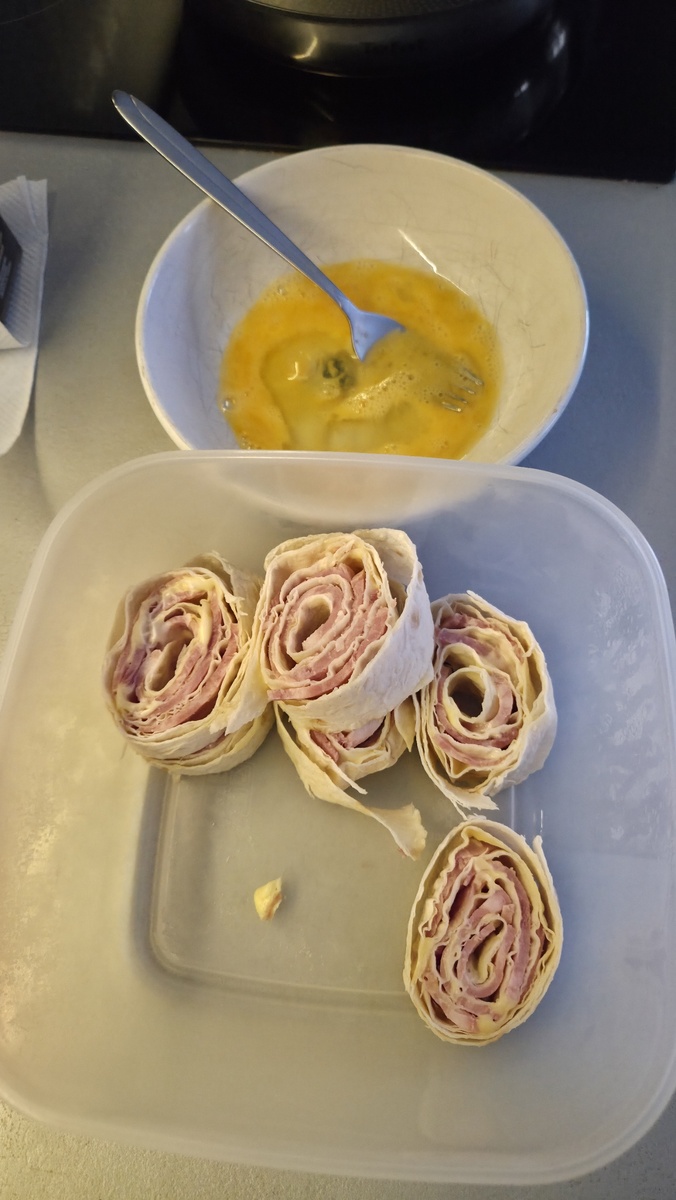 С новогодних каникул были найдены недоеденные закуски - это завернутая в лаваш ветчина. Это реально вкусно! Но к завтраку я их ещё подвеселю. Ни одно блюдо не испортит хрустящая корочка! Беру рулетики и обмакиваю в разбитое яйцо. И на горячую, смазанную маслом сковороду. Обжариваю с двух сторон. Пока корочка образуется-можно успеть сварить кофе. И готов питательный, вкусный завтрак! Доброе утро 🌄 И пусть у вас всё получится! Мой телеграм-канал с завтраками