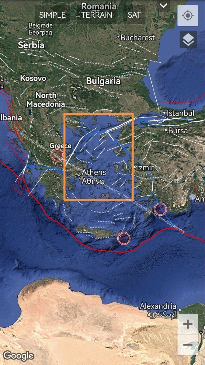 Маркерная сейсмика М4+ на обрамлении Эгейской плиты имеется.