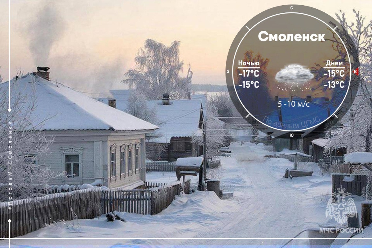 - в Смоленске: ночью -15°С