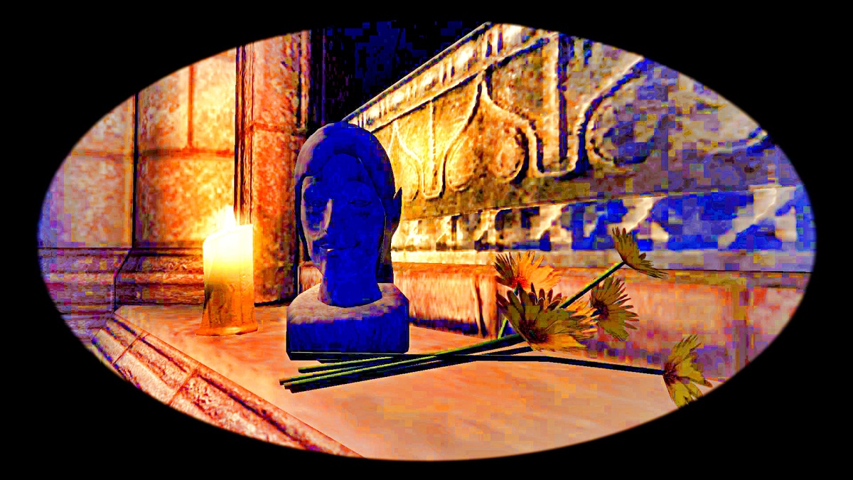 Освещённый пламенем одинокой свечи бюст стоял у саркофага графини.