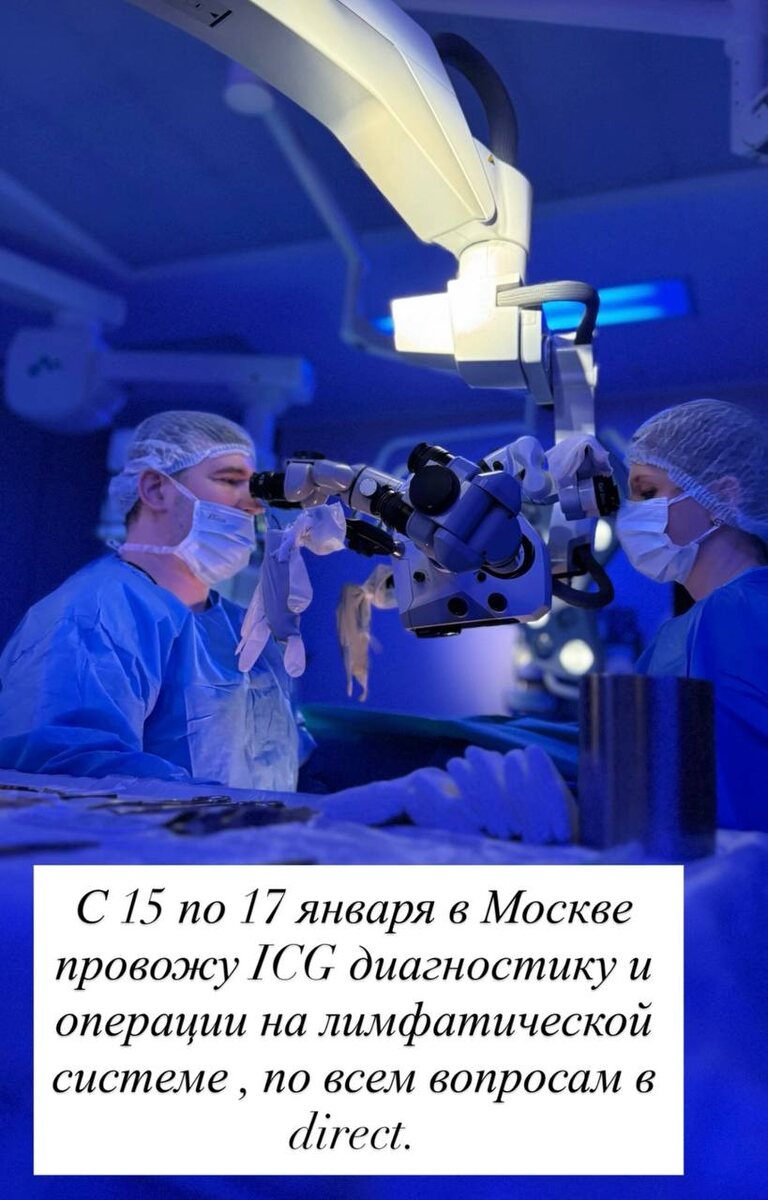 ❗️❗️❗️ ICG‑диагностика и операции на лимфатической системе — 15–17 января (Москва) С 15 по 17 января работаю в Москве: провожу флюоресцентную ICG‑диагностику и оперативное лечение заболеваний лимфатической системы. • ICG‑визуализация для точной картографии лимфатических путей, планирование и реконструктивные/лечебные вмешательства. • Индивидуальная предоперационная оценка, современные стерильные протоколы и послеоперационное наблюдение. • Количество мест ограничено — предварительная консультация и обследование обязательны. 💜Буду рад помочь и ответить на вопросы. 〰️〰️〰️〰️〰️ Записаться на консультацию 📨 Можно здесь 📱 По телефону +7 905 288 38 39 〰️〰️〰️〰〰 #маммопластика #консультация #пластика #пластическийхирург #клиника #омоложение #абдоминопластика #увеличениегруди #блефаропластика #эндоскопическое_омоложение #пластическийхирургспб #лимфедема #лимфография #микрохирургия #лимфовенозныеанастомозы #ICG