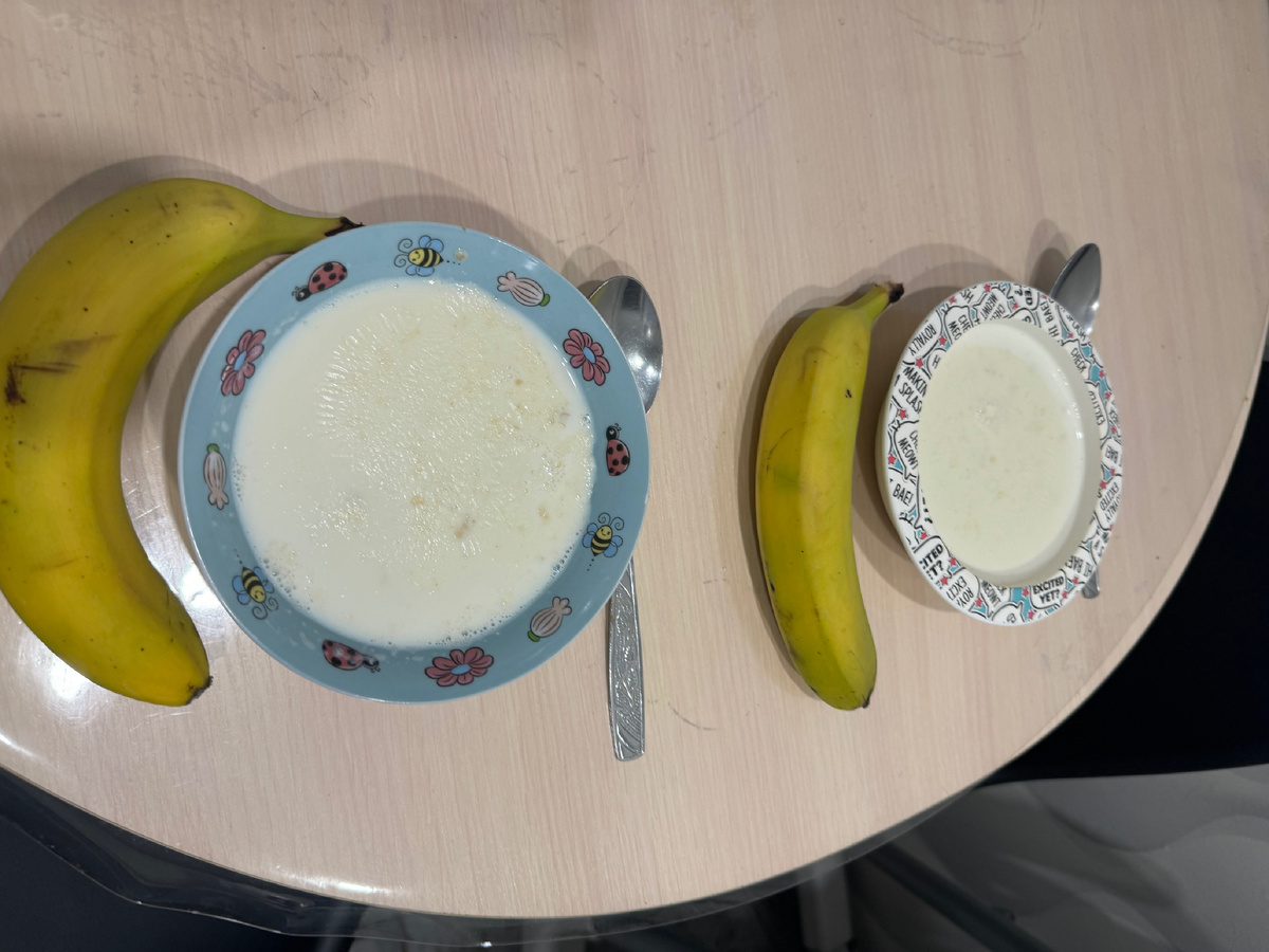 Встали в 7.45, муж уехал на рыбалку с утра пораньше, мы с детьми на хозяйстве. Сварила кашу овсяную, позавтракали, у детей дополнительно бананы.